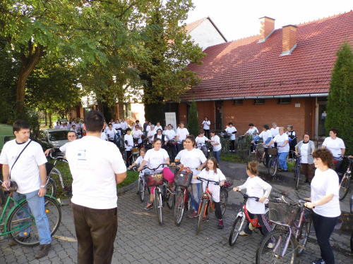 Mindeközben gyülekeztek a fiatalabbak az egészségház előtt, mivel idén a település is csatlakozott a Vásárhelyen már hatodik alkalommal megrendezett emlőrák elleni közös karikázáshoz. Mártélyon és Mindszenten is sokan nyeregbe pattantak, de a település nagyságához képest egyértelműen Székkutason voltak a legtöbben. Vásárhelyen 6-700, Mindszenten 60-70, Székkutason 70-80-an pattantak kerékpárra és tekerték körbe a falut, dr. Bakos Attila háziorvos – és immáron képviselő – indító jelére.