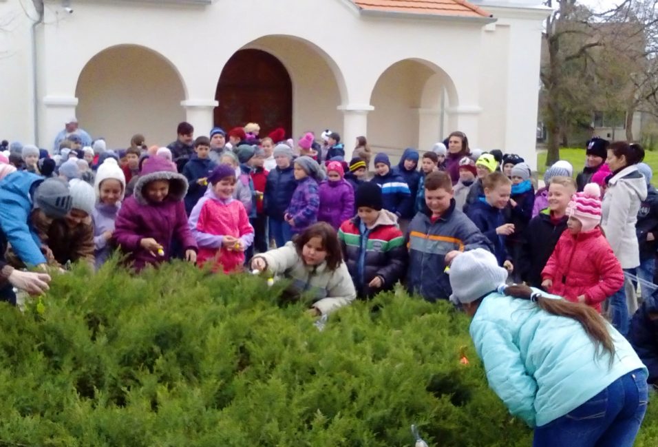Az elnök kiemelte, hogy a kör tagjai mellett Vízhányó Mária Ágnes tanító néni, Szűcsné Ponyecz Mária óvónő és Varga Attila atya is sokat segített, hogy megvalósulhasson ez a tojásbokor Zomborkán. Az állítást követően a Dózsa György Általános Iskola alsó tagozatosainak a húsvéti ünnepekről az atya tartott előadást.