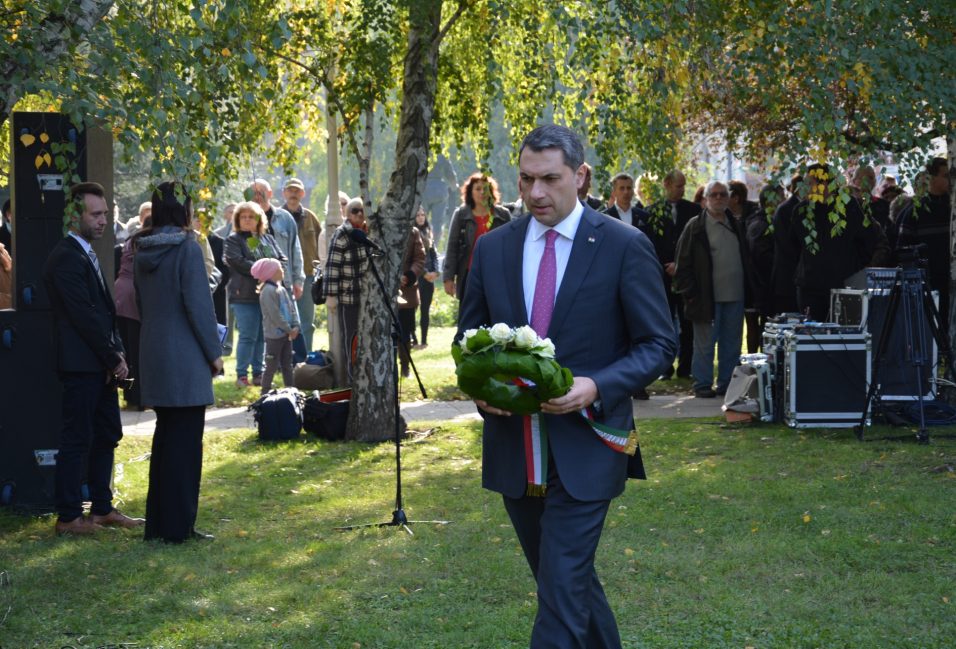 - 9.45 A felavatott emléktábla megkoszorúzása