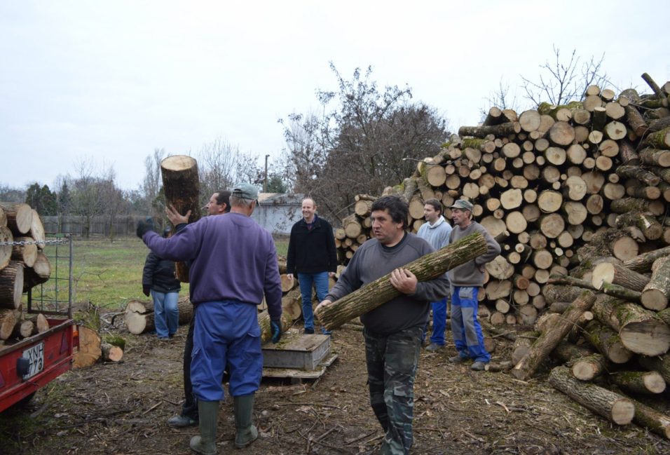 Archív fotónkon tűzifa osztás Pitvaroson.