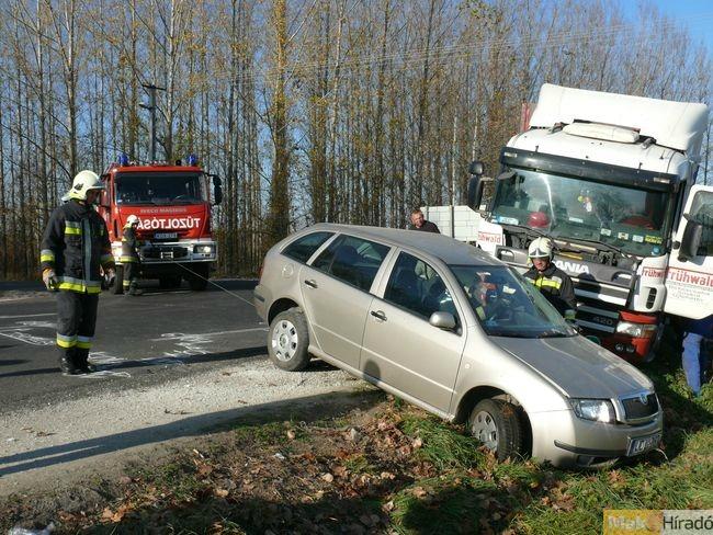 Kamion és személyautó karambolozott Makó és Apátfalva között