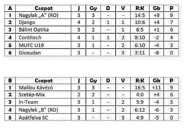Az In-Team – Malibu Kávézó összecsapásával vette kezdetét a Givaudan Téli Kupa második fordulója. Az ebéd utáni meccsen összesen 6 gól született. Ezt követően még 9 mérkőzést játszottak az ‘A’, a ‘B’ és a ’35F’ kategória szereplői.