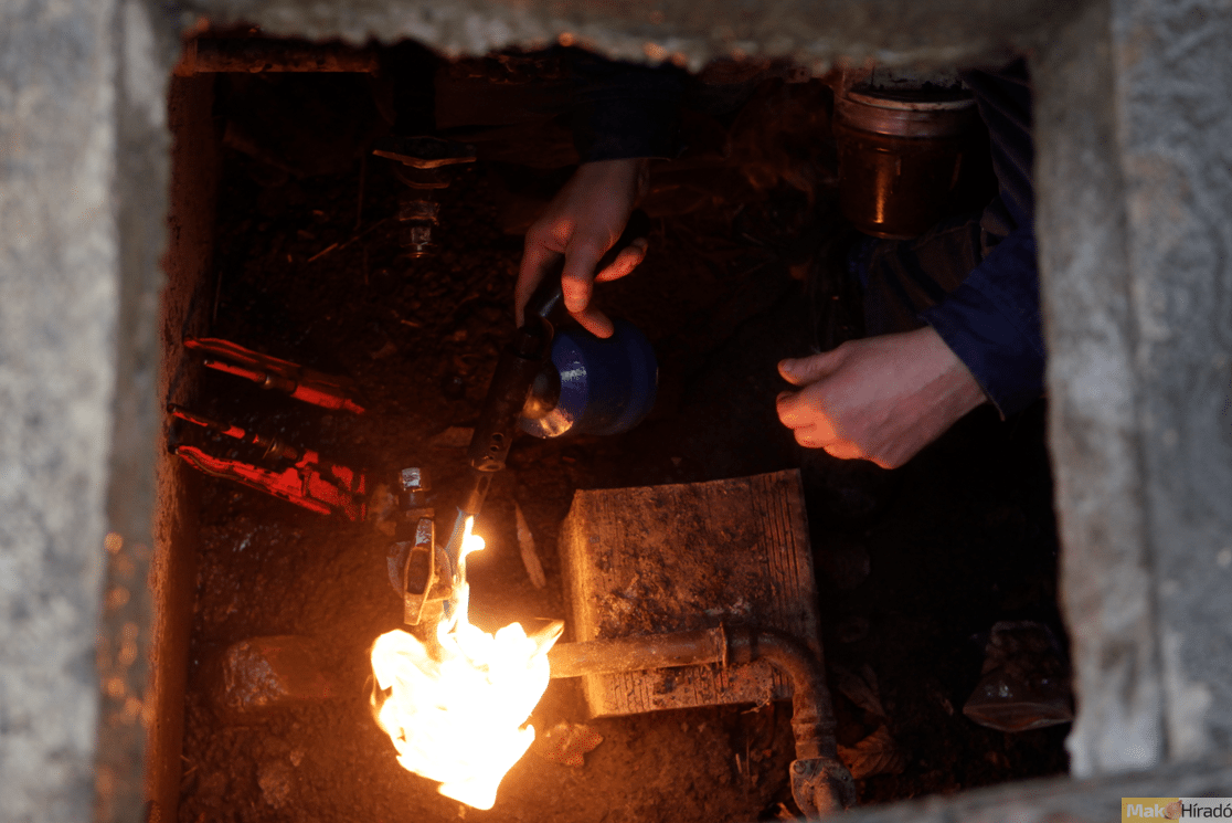 Elfagyott vízóra cseréje. Melegíteni kell a szerelés előtt. Fotó: Alföldvíz