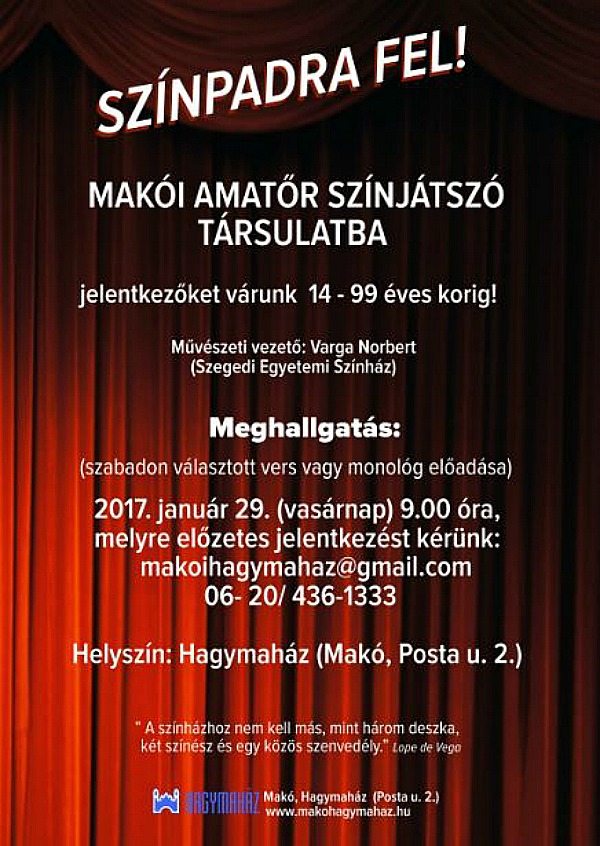 Amatőr színjátszókat keresnek Makón