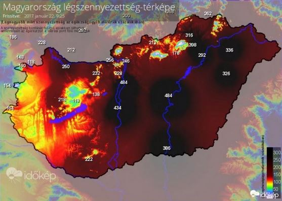 Egy anticiklon hatására nyugodt, szélcsendes időjárás uralkodik térségünkben. Emiatt ismét megnövekedett a légszennyező anyagok, elsősorban a szálló por (PM10) koncentrációja, ami már többfelé átlépte az egészségügyi határértéket. a következő napok sem hoznak jelentős javulást, szélcsendes, többfelé ködös, borongós időre készülhetünk. A jelenlegi számítások szerint a jövő hét közepén élénkülhet meg a szél, ami kitisztíthatja majd a levegőt – közli az idokep.hu