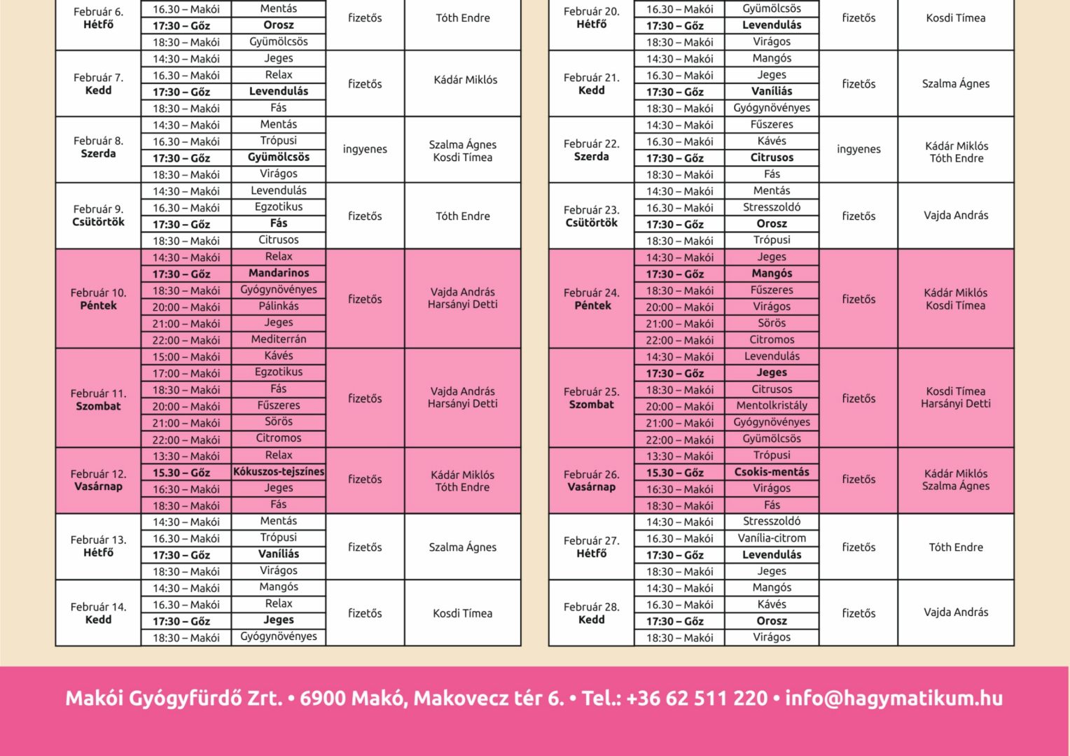 Ne búslakodjon, aki lemaradt a hónap elejének kínálatáról, hiszen egész február végéig szaunázhat a Hagymatikumban. Itt a hátralévő alkalmak részletes programja: