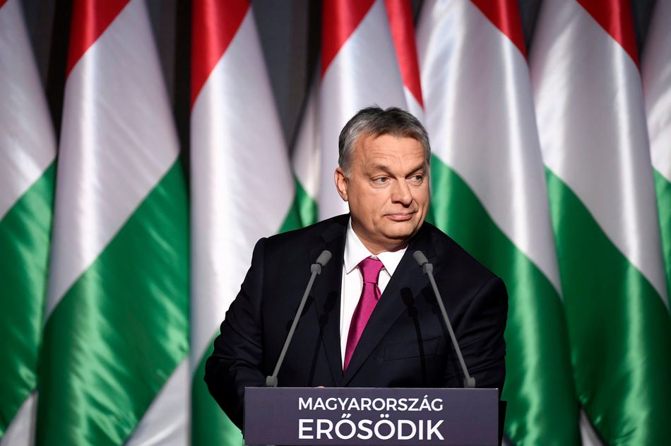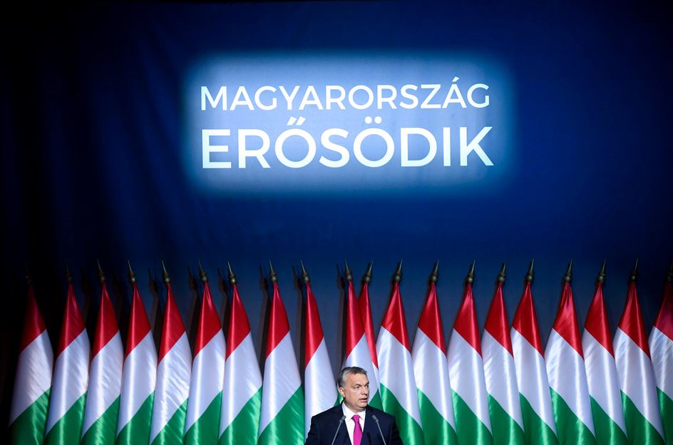 Orbán Viktor miniszterelnök szerint az elmúlt évben Európában fellázadtak azok, akiknek eddig nem lehetett hallani a hangját, akiket a politikai korrektség „szájzár alá vett”. MTI Fotó: Koszticsák Szilárd