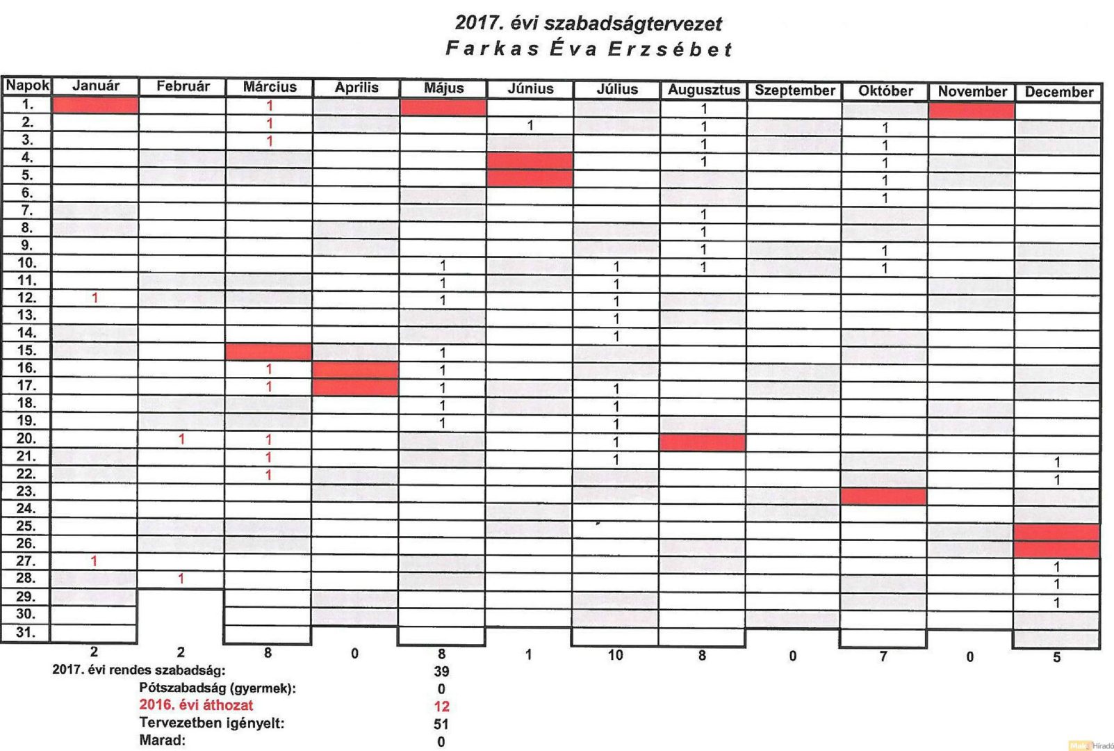Farkas Éva Erzsébetnek ennyi nap szabadságot hagyott jóvá munkáltatója.