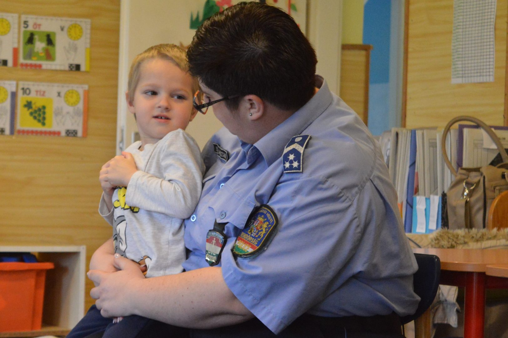 – A gyerekek nagyon érdeklődőek a rendőrök iránt. Tetszik nekik az, hogy én nőként és anyaként is jelen vagyok – fogalmazott Decsiné Oláh Zsuzsanna, a Makói Rendőrkapitányság rendőr-főtörzsőrmestere. – A kollégám pont a másik oldal, azonban ő is ki tudja alakítani a kapcsolatot a gyerekkel. Úgy vettük észre, hogy szeretnek is minket a kicsik.