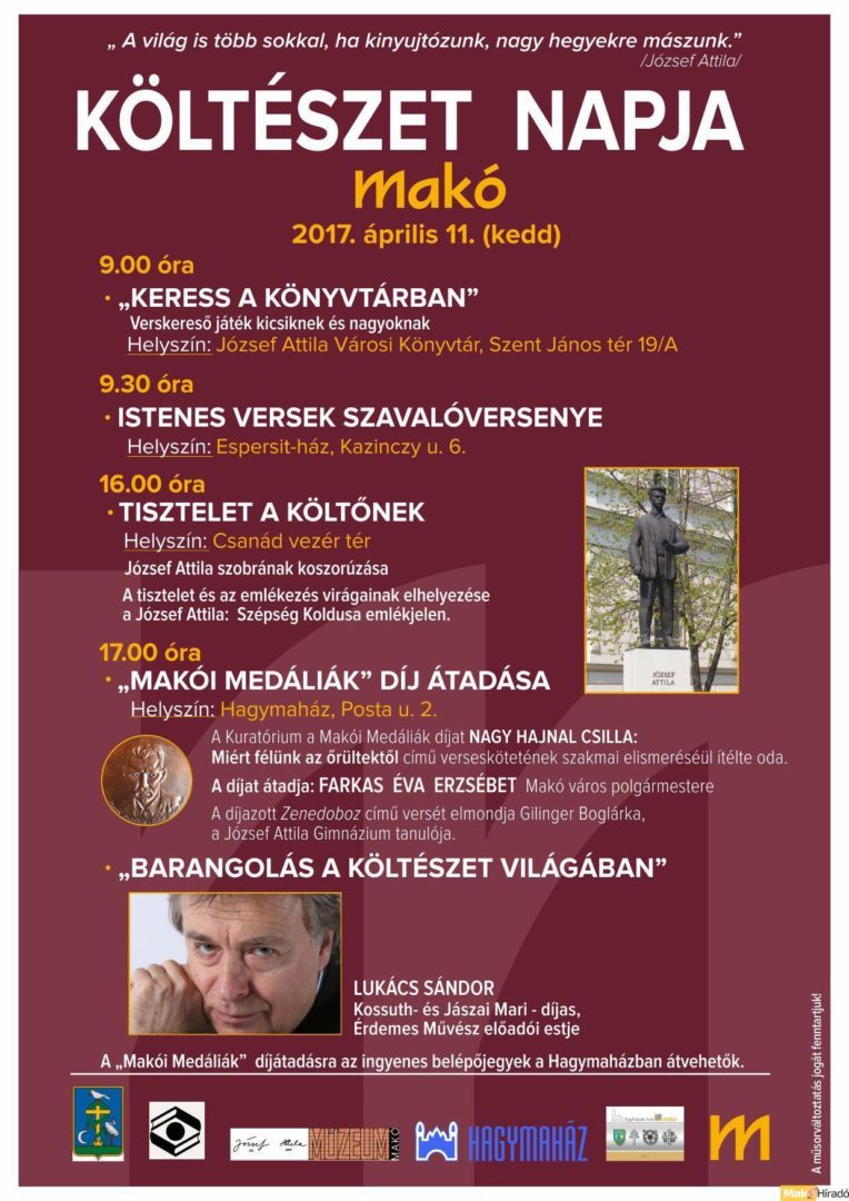 Lukács Sándor estjével zárul a költészet napja Makón
