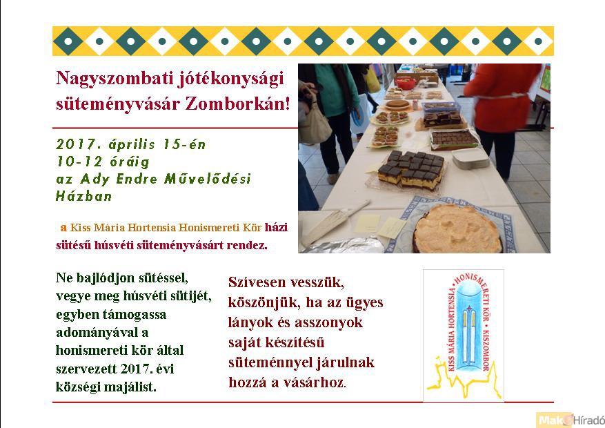 Jótékonysági süteményvásár Kiszomboron