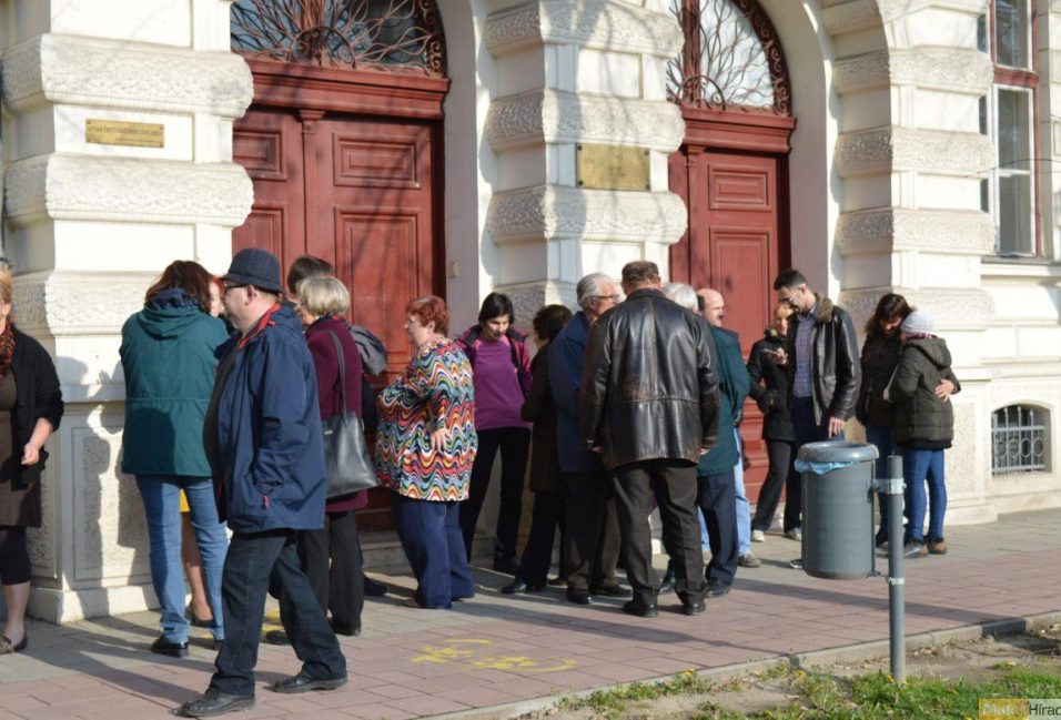 Szerdán délután 5-től rendeznek szimpátiatüntetést Rója István, a József Attila Gimnázium igazgatója mellett a JAG József Attila utcai részén. Archív képünkön a tanitanek.com által meghirdetett március 30-i polgári engedetlenségen résztvevők a gimi előtt (köztük Mucsi Tamás, a DK választókerületi elnöke és Török Miklós alelnök).