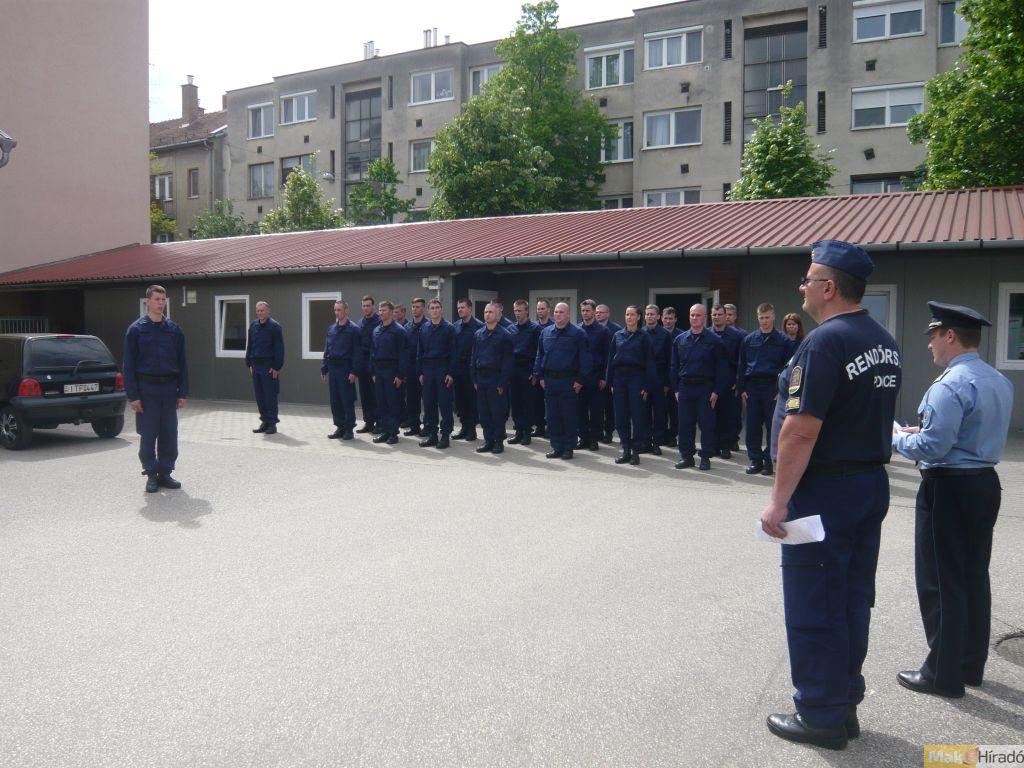 A március 1-jén indult szakasz 27 tanulója április 27-én tette le az alapvizsgát Csongrád megyében. Írásban jogi, közrendvédelmi és rendészeti ismeretekből, gyakorlatban pedig általános szolgálati ismereteken belül a tiszteletadás módjáról, valamint a jelentéstétel szabályairól kellett számot adniuk. A modulzáró vizsgát a csoport minden tagja eredményesen teljesítette.