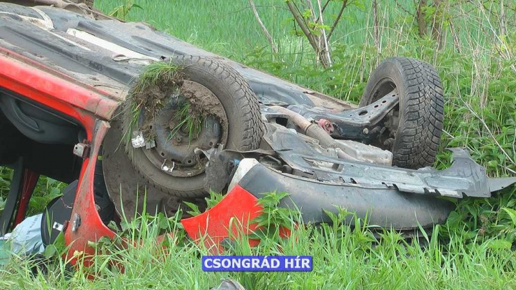 Orosháza felé haladt a Volkswagen, amikor egy balra ívelő kanyar után az út szélére haladt, női vezetője ellenkormányzott, majd az út túl oldalára sodródott, és a szántáson többször felborult, majd fejtetőn állt meg.