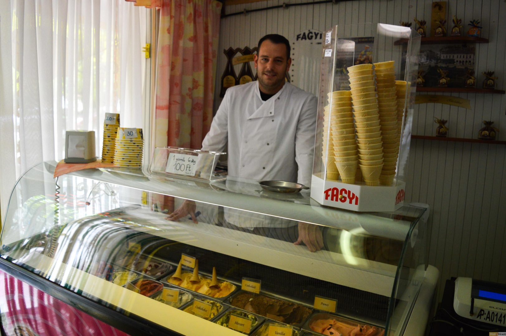 – Azt próbáljuk megmutatni az embereknek, hogy a kézműves fagylalt abból készül, amiből készülnie kell. Sajnos ez nem mindig így van mostanában Magyarországon. Ezzel az akcióval megpróbáljuk egy kicsit reklámozni, hogy milyen is a rendes fagyi – mondja Nagy Lászlóné tulajdonos.