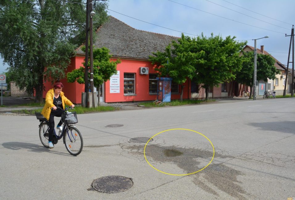 A makóiak öröme azonban folyamatosan ürömre változik, ahogy az hétfőn is történik majd, amikor is a garanciális javítást végeznek az Almási és Szép utcák kereszteződésében, ahol beszakadt az úttest. Ebből az arra járó laikusok csak azt látják, hogy, a képünkön sárga karikával jelzett helyen megsüllyedt és berepedezett az aszfalt, ezt a tervek szerint hétfőn reggel 9-kor kezdik kibontani. A munkálatok körülbelül egy hétig tartanak majd.