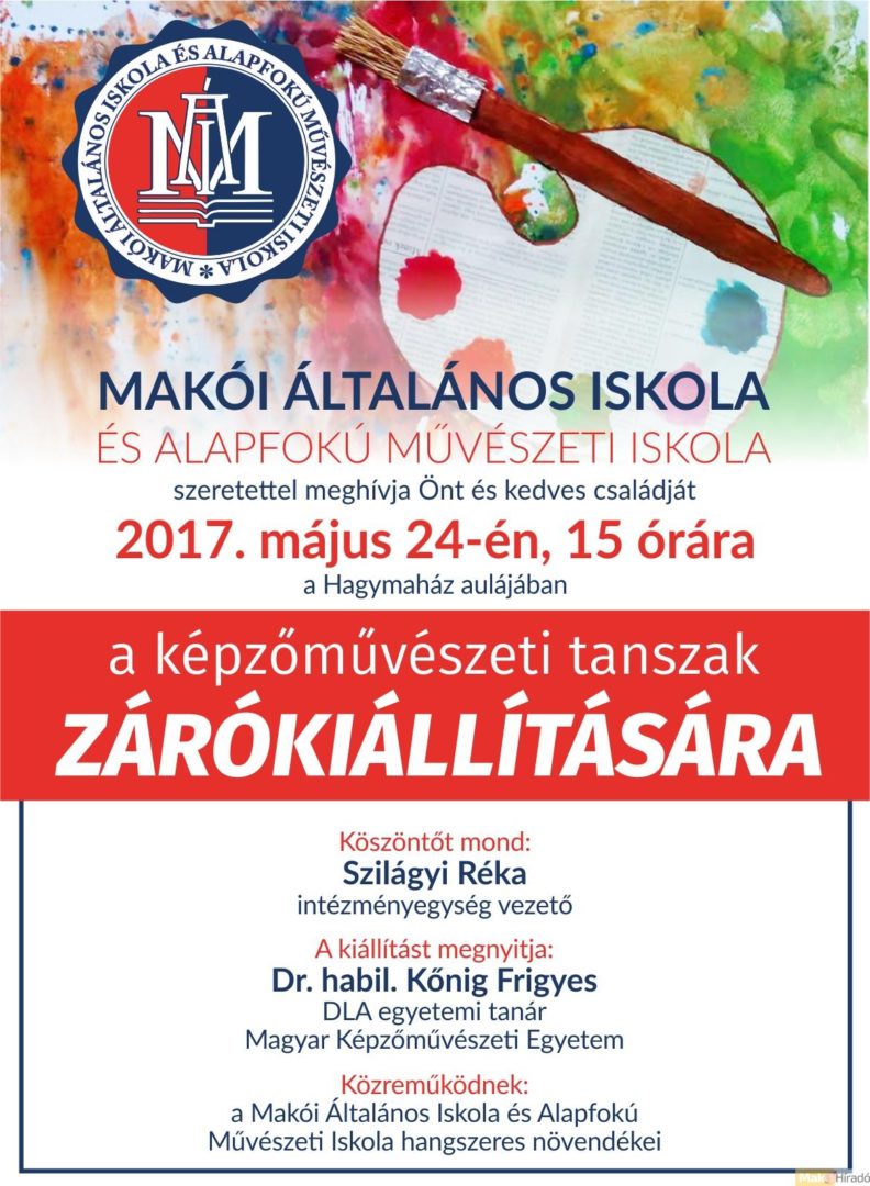 A Makói Általános Iskola és Alapfokú Művészeti Iskola képzőművészeti tanszakának zárókiállítása nyílik május 24-én, szerdán.