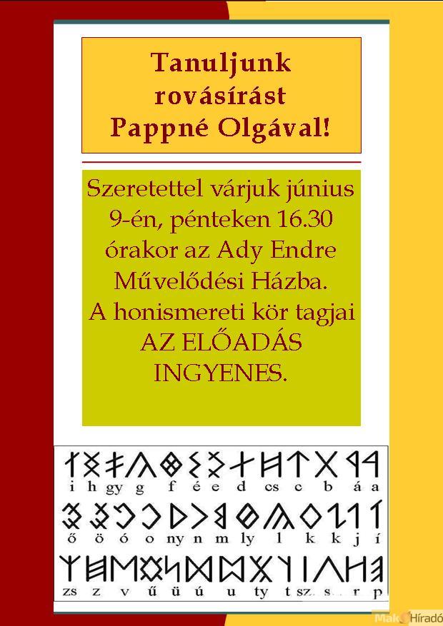 A rovásírásról Kiszomboron