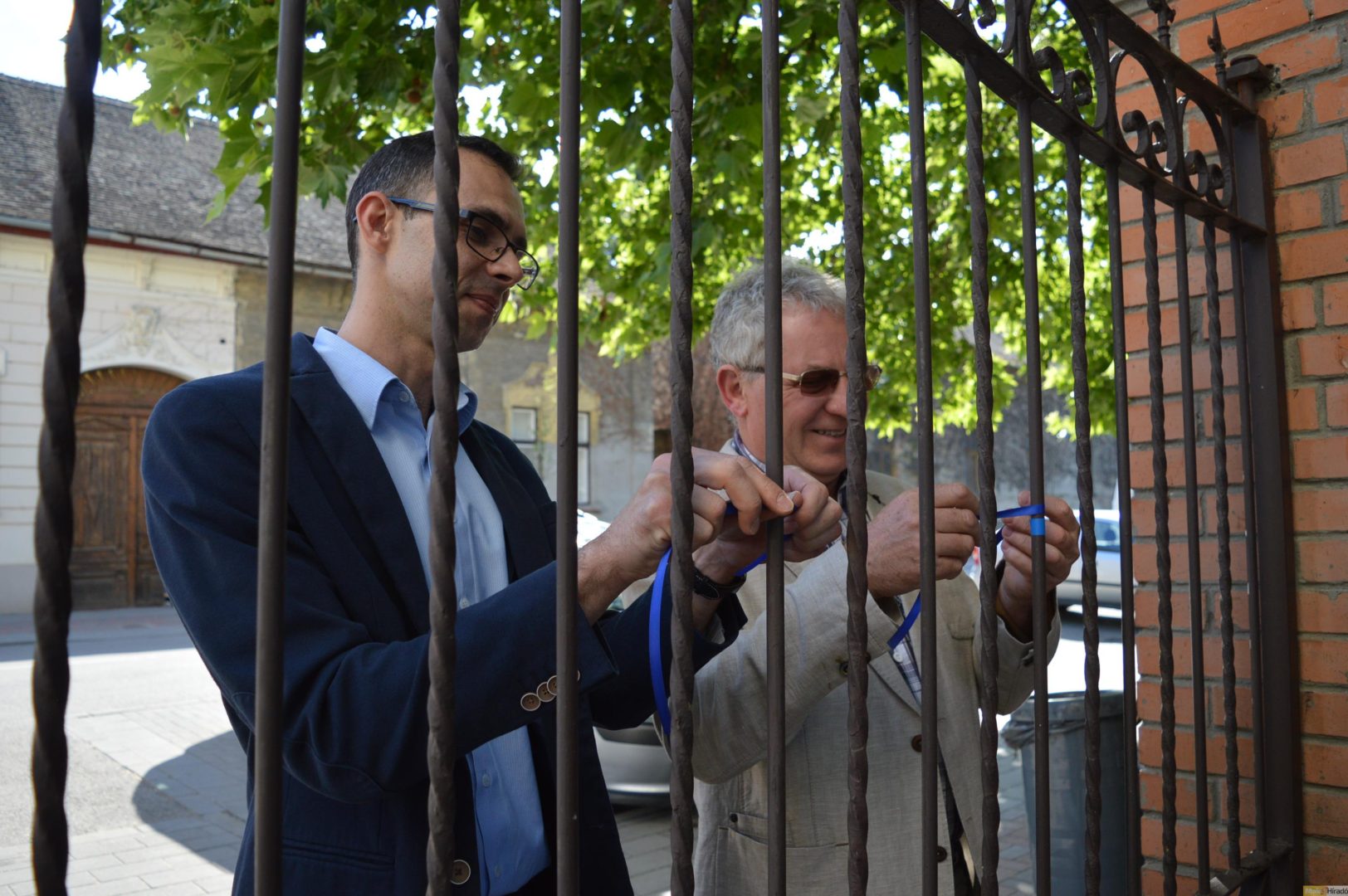 Nagy-Huszein Tibor, a Demokratikus Koalíció alelnöke elsőként kék szalagot kötött a József Attila Gimnázium vaskapujára, ezzel jelezvén, hogy Rója István mellett áll. Az alelnök elmondta, elképedve hallja, hogy a 22 éve, mindenki közmegelégedésére dolgozó igazgatót úgy ebrudalná ki a Fidesz a posztjából, hogy nincs helyette más jelölt. Pedig az igazgató csupán független értelmiségiként próbált viselkedni.