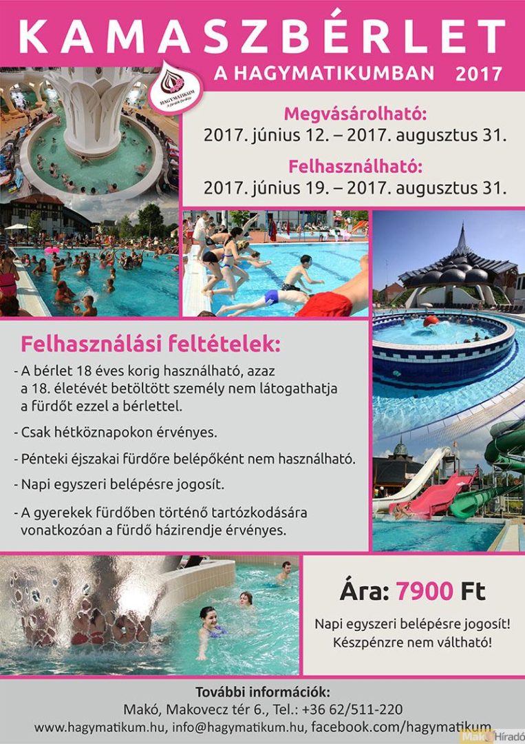 A Hagymatikum kamaszbérletét mindenki megválthatja, aki még nem ünnepelte meg 18. születésnapját. Ezzel akár minden hétköznap csobbanhat a fürdőben. Részletek a plakáton.