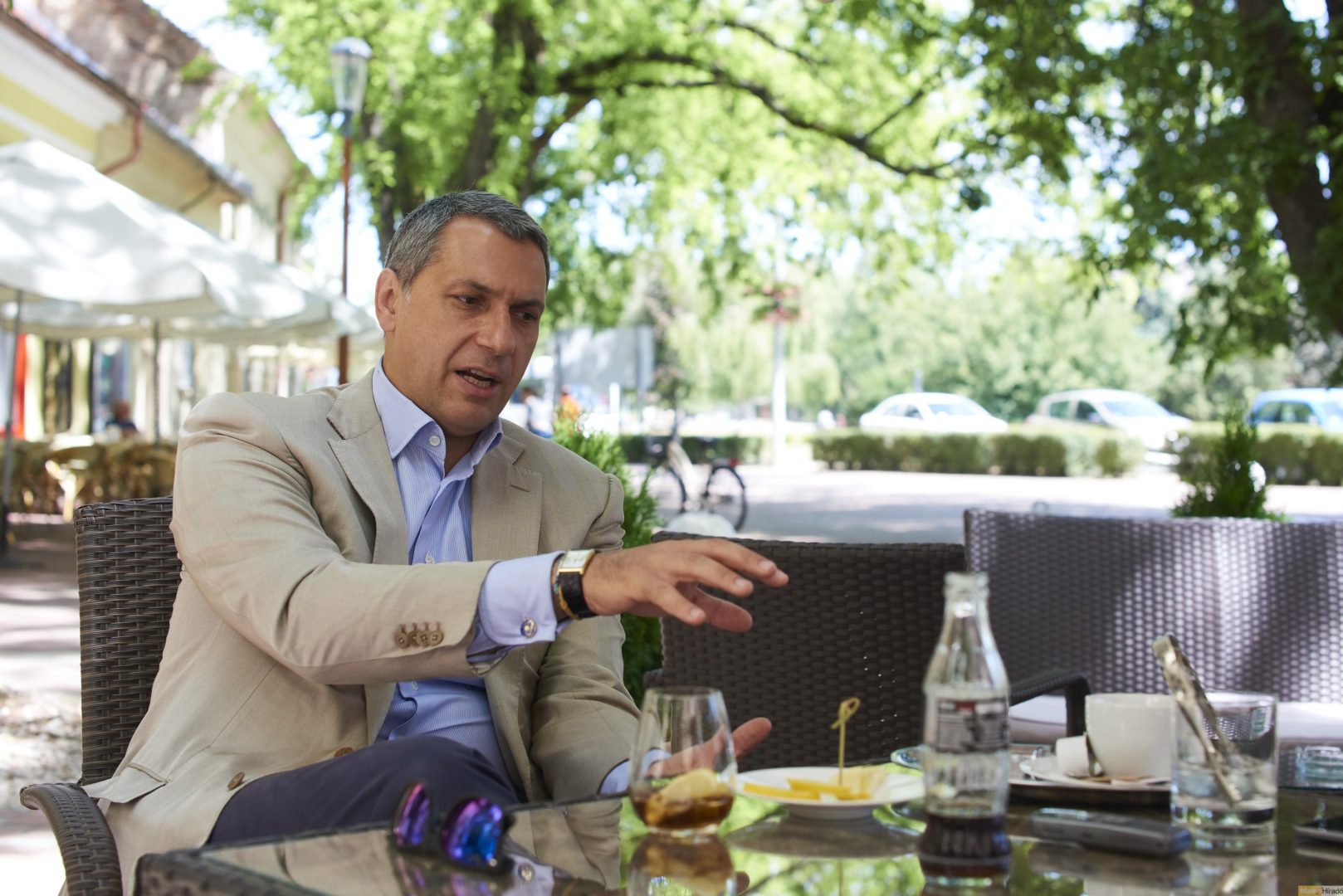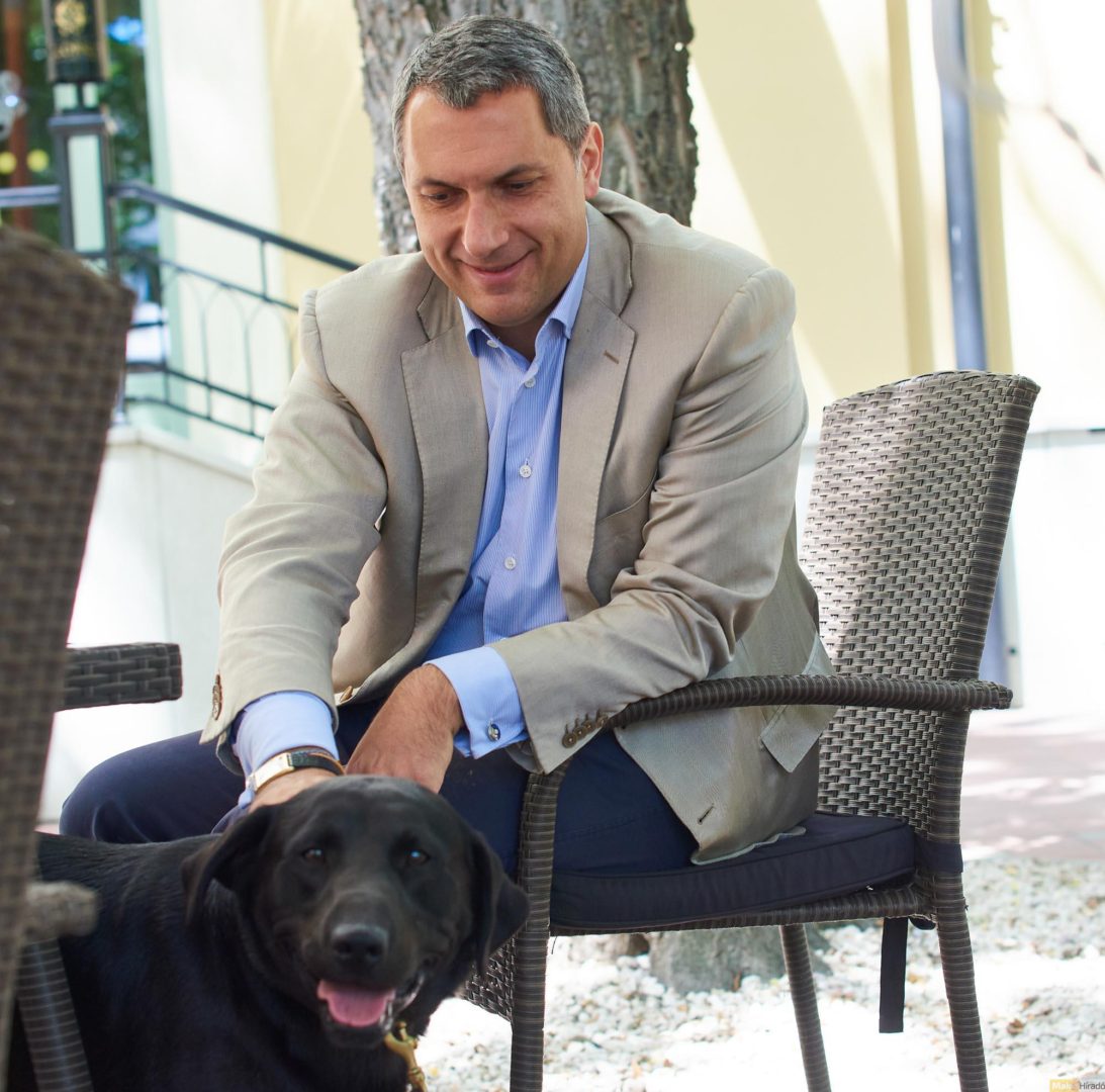 – Nagy becsben tartjuk, családtag, a lakásba viszont nem jöhet be. A gyerekeket nagyon szereti, esténként a szobájuk ablaka alatt alszik – mesélte a képviselő, akivel a kutyatartás örömei mellett komolyabb témákról is beszélgettünk a makói Glorius Hotel teraszán.