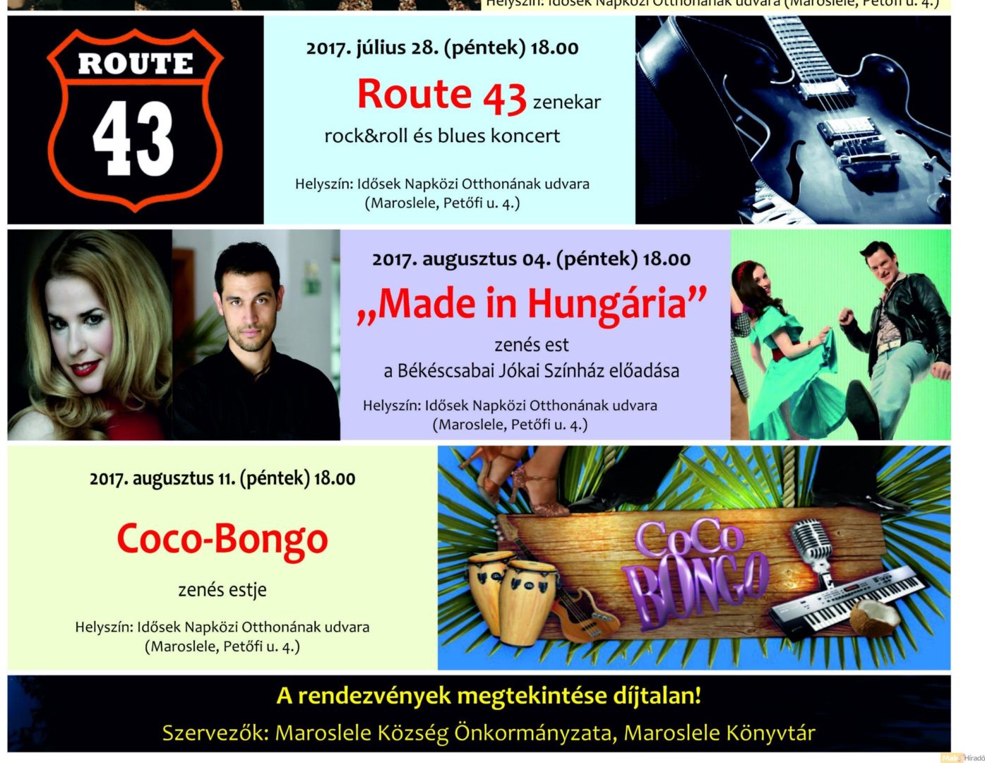 Pénteken jön a Route 43, majd a Fenyő Miklós életét feldolgozó Made in Hungária és legvégül a Covo Bongó.