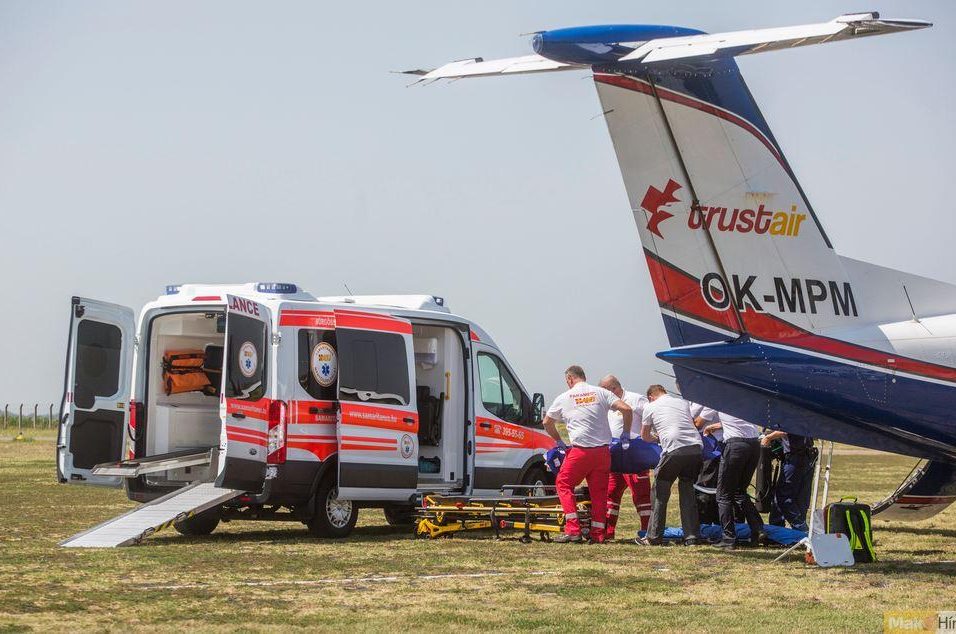 Stabil állapotban van az a 19 éves nő, akit ma egy kisrepülővel szállítottak Szegedre a bulgáriai Burgaszból, ahol három hete autóbalesetet szenvedett, s kómában feküdt a helyi kórházban. MTI Fotó: Rosta Tibor