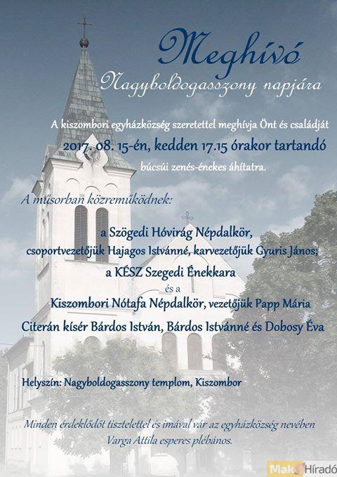 Búcsúi zenés-énekes áhitat Kiszomboron