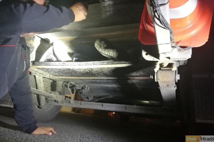 Hajnalban azonban megint dolguk akart a rendőröknek, két helyszínen is. A magyar és román hatóságok közös ellenőrzés során egy bolgár férfit tartóztattak fel, akinek autószállító trélerében hét határsértő próbálta meghúzni magát (borítóképünkön a rejtekhelyük látható).