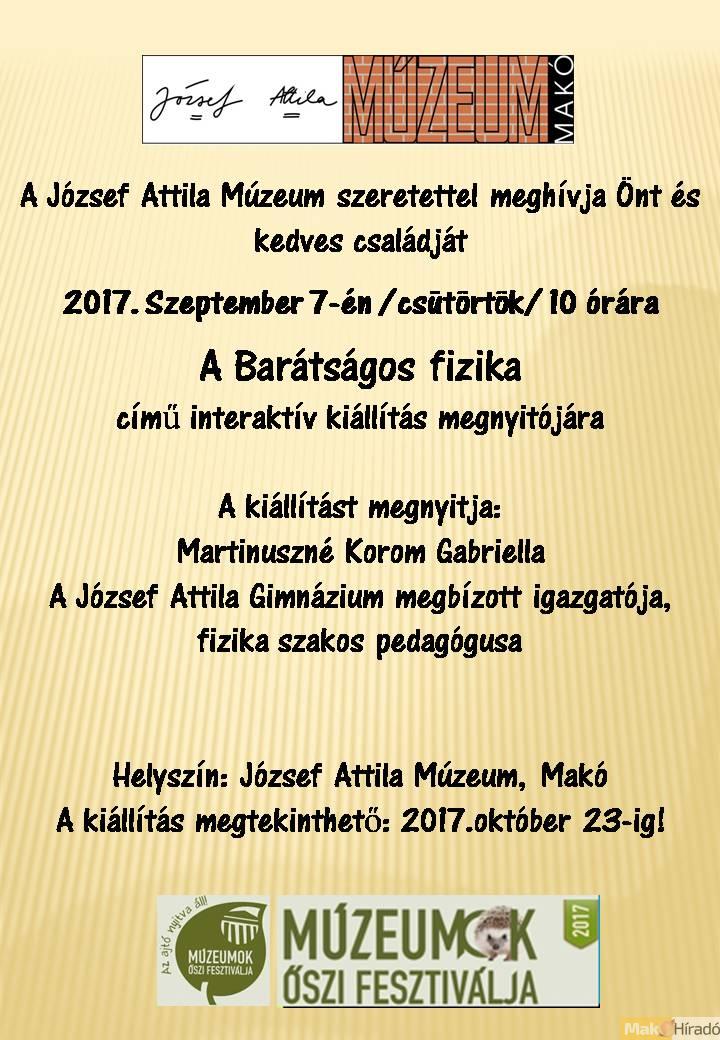 Két, egymástól független programot is rendeznek a József Attila Múzeumban a hét végén. Csütörtökön interaktív fizika kiállítás nyílik, szombaton a trianoni békeszerződés makói térségre gyakorolt hatásáról esik szó.