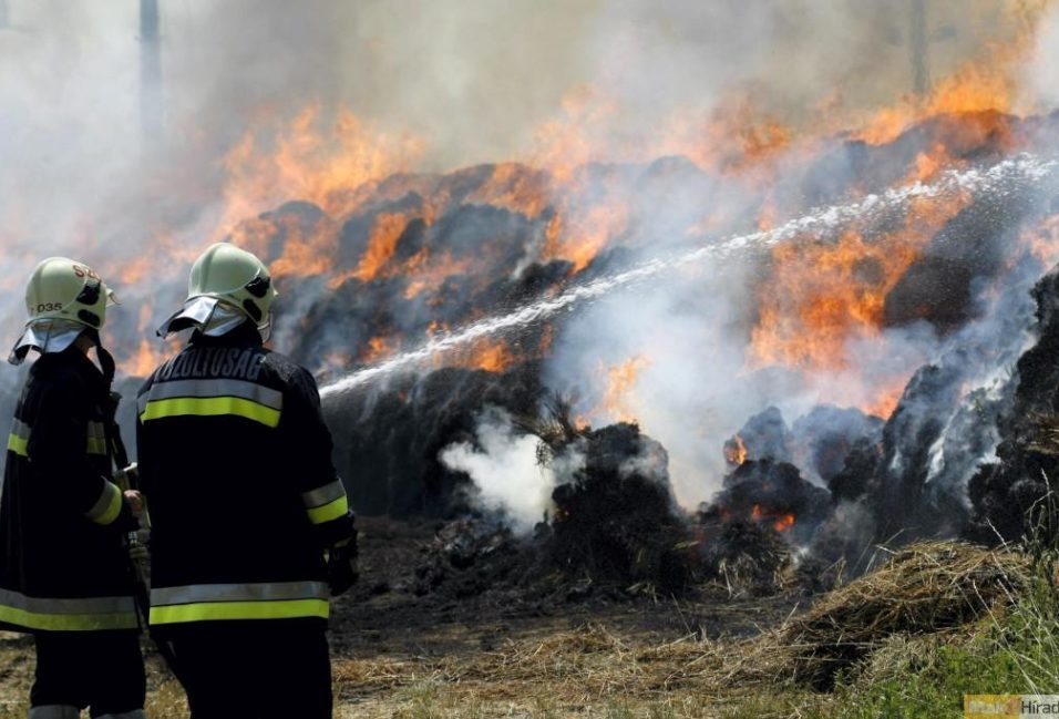 Húsz körbála és a kiszáradt aljnövényzet égett hétfőn délután Földeák és Szikáncs között. A kép illusztráció.