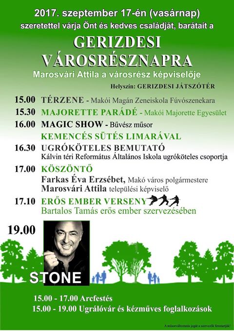 Vasárnap 3-kor térzenével kezdődik a Gerizdesi Városrésznap, mely sztárvendége Stone. A kép a tavalyin készült.