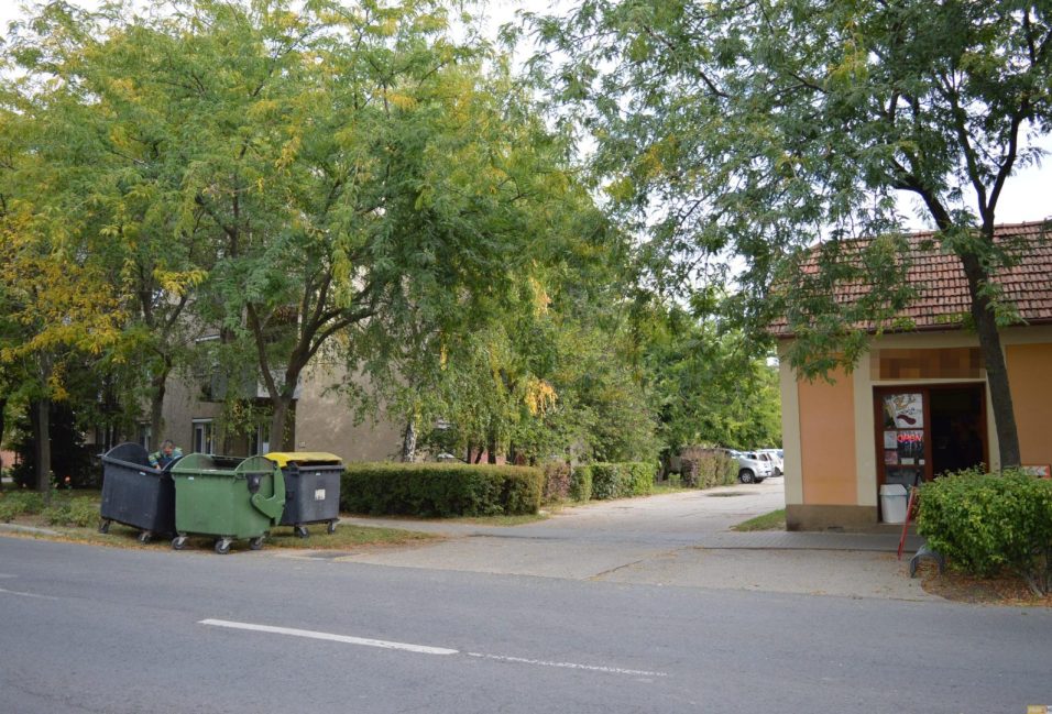 A hulladékgyűjtő edények eddig itt voltak, mind a négy lakótömböz közel.