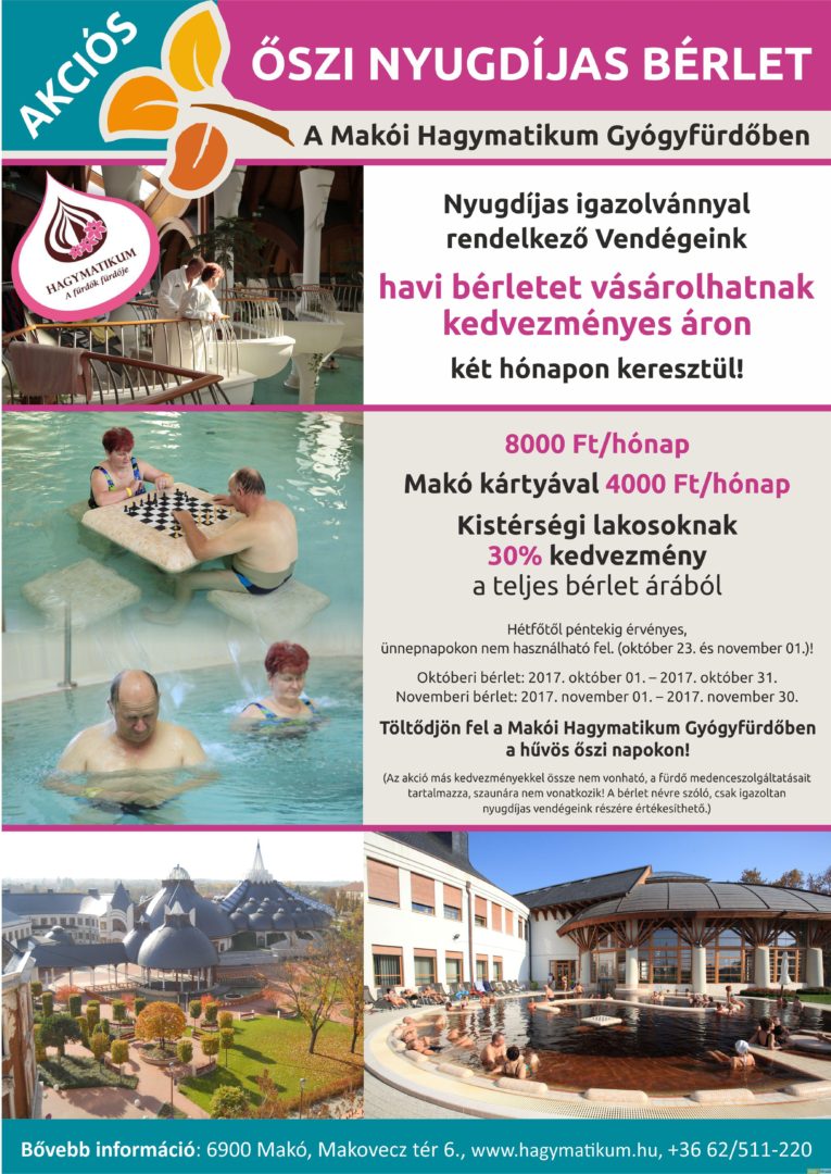 Remek ajánlat a nyugdíjasoknak a Hagymatikumtól