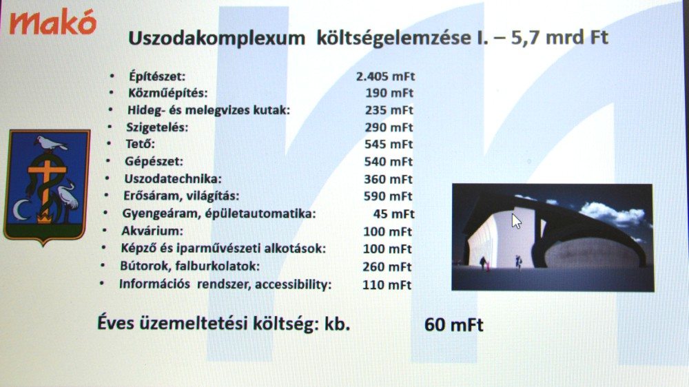 Azt már Gerencsér Judit árulta el, hogy az új uszodakomplexum négyzetméterenkénti ára 312 ezer forint lesz, mely – hangsúlyozta – megegyezik egy családi házéval. A 8,8 milliárd forintos fejlesztési összeg egyelőre becsült költség, hiszen folyamatosan emelkedik a munkaerő és az építési anyagok ára. És eleget kell tenniük annak a hatósági előírásnak is, hogy az uszoda aljára egy 10 centi vastag – a tervezők szerint fölösleges – szigetelést kell beépíteni. Ez utóbbiról nincs olyan szakhatóság, mely kimondaná, hogy nem kell, de 15 millióba kerül.