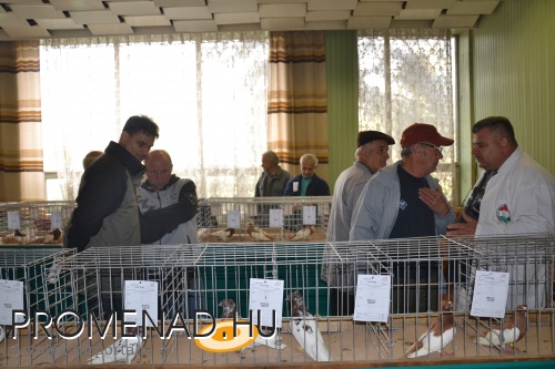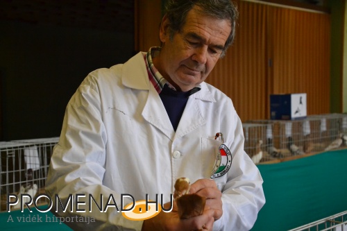 Ám vasárnap nem tartottak röpversenyt, hiszen a szezonja szeptember közepén véget ért, ilyenkor a vedlés után kezdődik meg a kiállítások ideje. A küllembírálók a ketrecen található címkéket töltik ki, ez alapján döntik el melyik tojó, illetve melyik hím a legszebb.