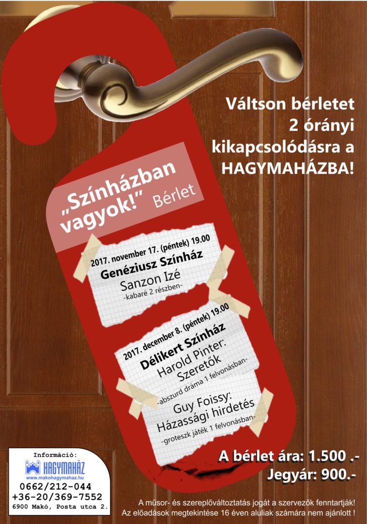 Két remek darabot lehet megnézni a Hagymaház új bérletével. Az elsőt már péntek este.