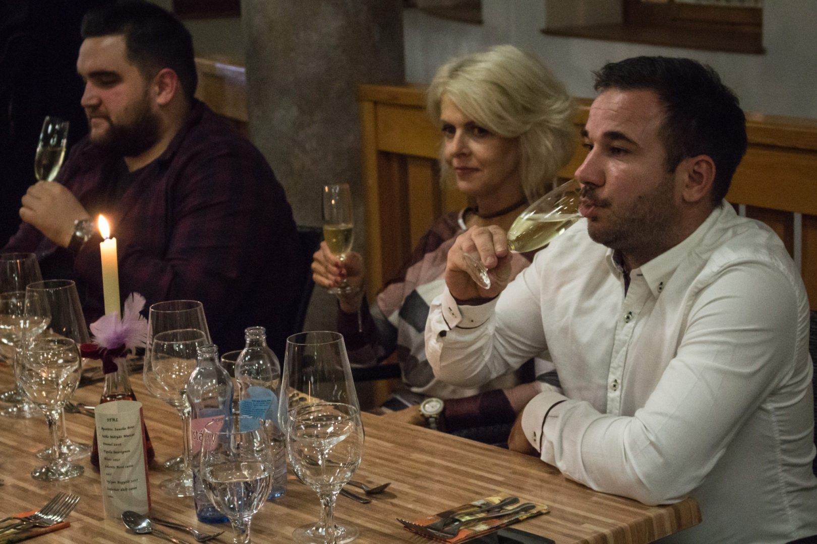 Mind a fogások, mind a borok a Márton napi hagyományok fényében lett kiválasztva. Ez az időszak az új borok ideje, hiszen ekkor kóstolják meg először őket, így tehát idei, illetve tavalyi évjáratú magyar borok lettek felszolgálva. Hegyes István, a borkóstoló házigazdája azt is elmondta, interaktív programmal készült a vendégeknek: az est folyamán egy tesztet tölthetnek ki a kóstolt italok kapcsán, a nyeremény pedig természetesen egy üveg bor volt.