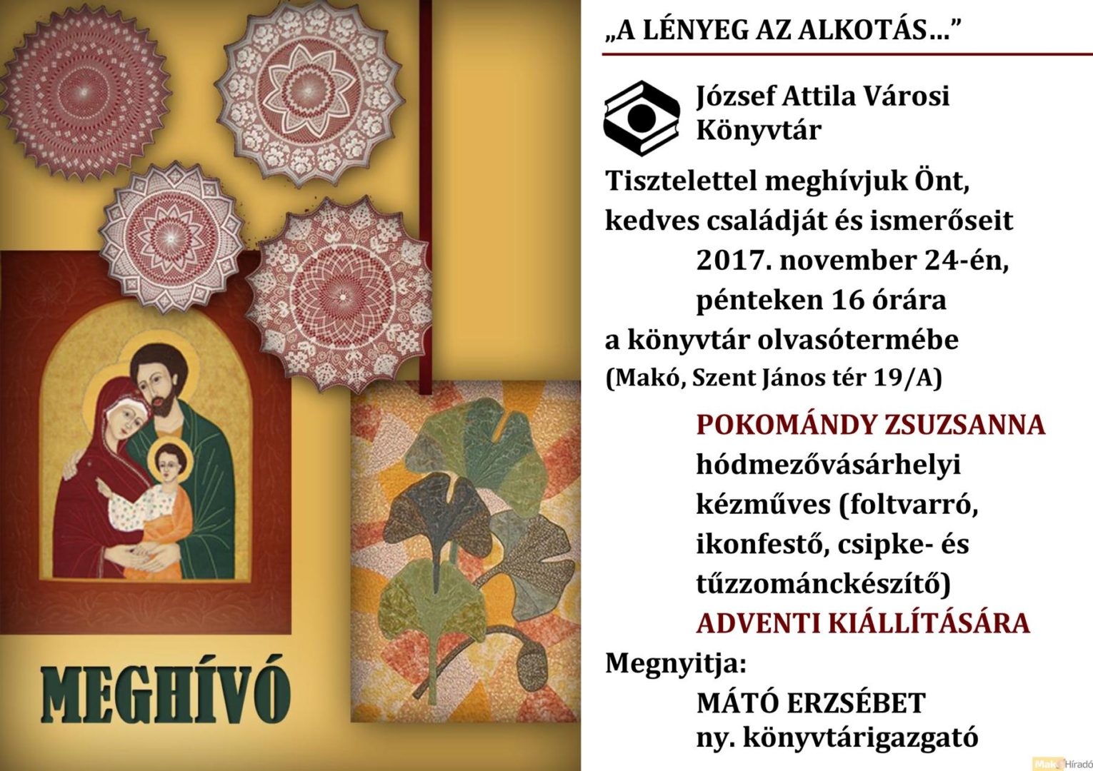 Pokomándy Zsuzsanna adventi tárlata a makói könyvtárban