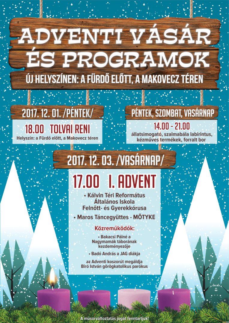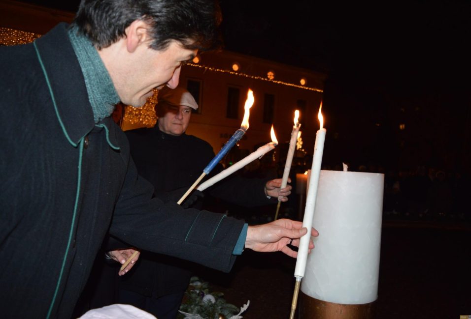 Már pénteken fellép Tolvaj Reni, de lesz állatsimogató és vasárnap már az adventi koszorút is megáldják a Makovecz téren, a Hagymatikum előtt. A kép a tavalyi gyertyagyújtáson készült.