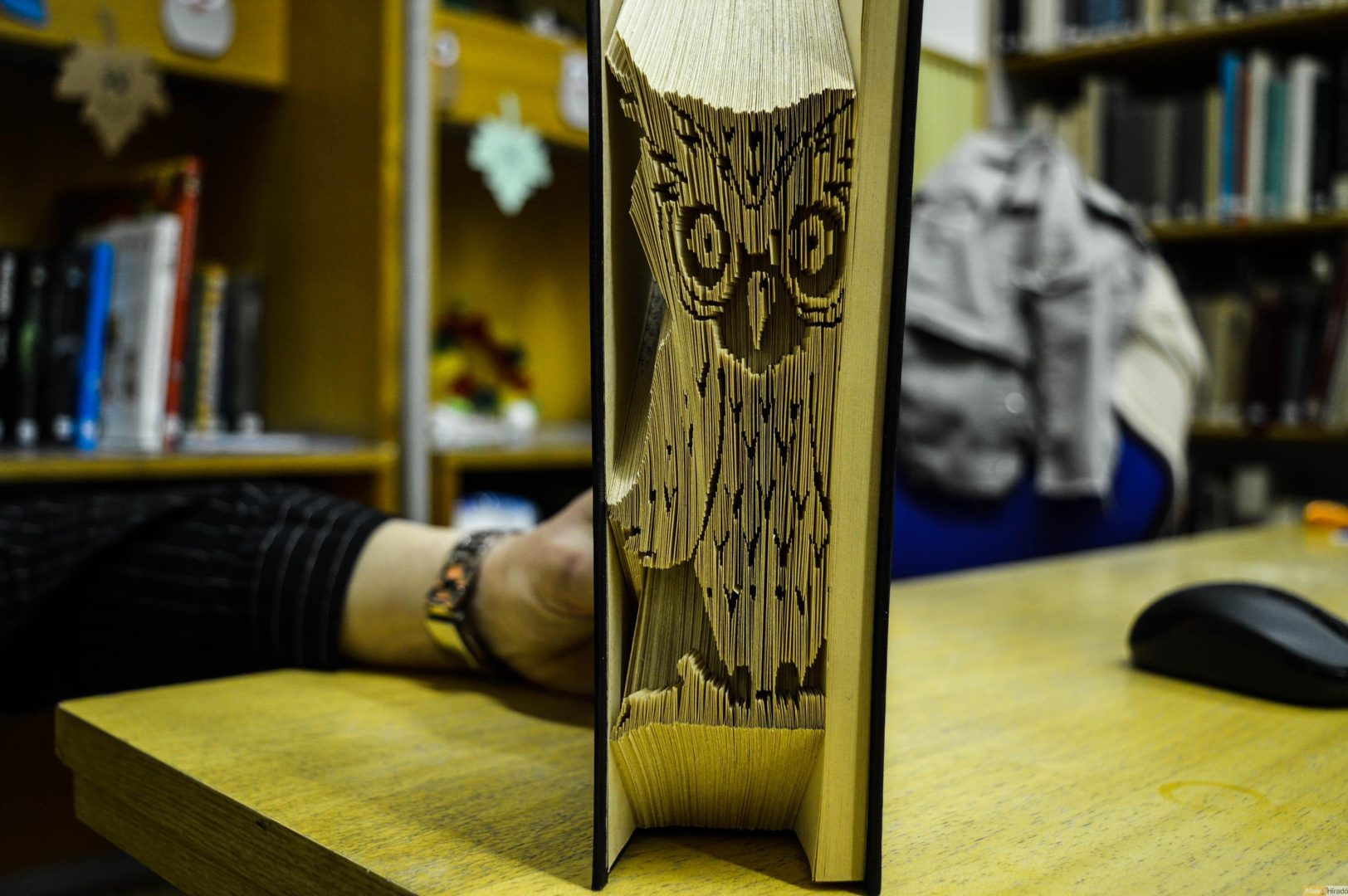 A József Attila Városi Könyvtár és Múzeum Gyermekkönyvtárának egyik dolgozója valóságos csodákat készít az intézmény leselejtezett könyveiből. Virágokat, baglyokat és egyéb motívumokat hajtogat a könyvek lapjaiból.