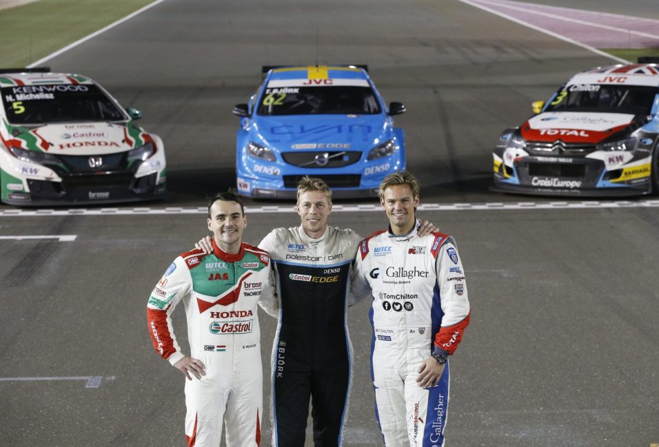 A túraautó-világbajnokságban versenyző Michelisz Norbert a magyar autósport nevét öregbítette a hétvégi katari futamon: a Honda gyári csapatának pilótája a második helyen zárt a világbajnokságban. Főképünk: Michelisz Norbert, Thed Björk, Tom Chilton. Kép: Jean Michel Le Meur / DPPI.