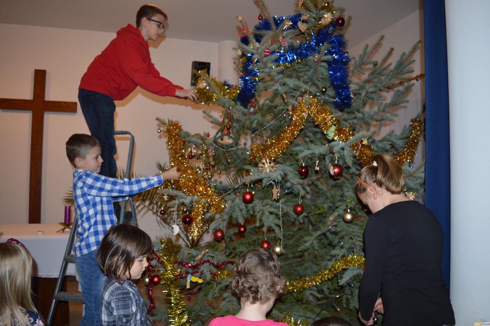 Kevés volt a dísz a Szent László Király plébánián található karácsonyfára, amelyet a Makói Nagycsaládosok Egyesületének gyermektagjai díszítettek fel. Kicsik és nagyok egyaránt segíteni szeretettek volna, hogy minél színesebb és díszesebb legyen az ünnepi örökzöld.