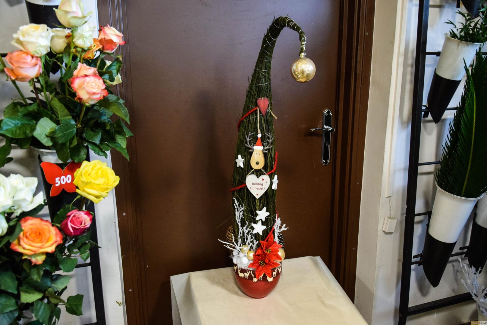 – Nagyon egyszerű az elkészítése: valamilyen kerámiába érdemes helyezni, megadva az ünnepeknek a tiszteletet, oázist rögzítünk a tálkába, egymás mellé szépen függőlegesen zanótot rakunk, ha ez megvan, szépen dróttal ezt összecsavarjuk, a vége felé jobban meg kell erősíteni, ezt el is lehet hajtani. Az aljába tehetünk még tuja- vagy fenyőágakat, attól függően mennyire erőset, milyen magasat akarunk készíteni. Ezt szépen eldolgozzuk, még szalaggal is körbecsavarhatjuk, száraz virágokkal, egyéb kreatív díszítőelemekkel dekorálhatjuk. Én nem szeretem, ha csak szalag van rajta, ebből is inkább vékonyat használjunk. – osztotta meg velünk a grincsfa elkészítésének titkait Andrássyné Judit, aki először körülbelül 10 éve készített ilyen jellegű grincsfát, ám akkor még közel sem volt ennyire népszerű, mint napjainkban.