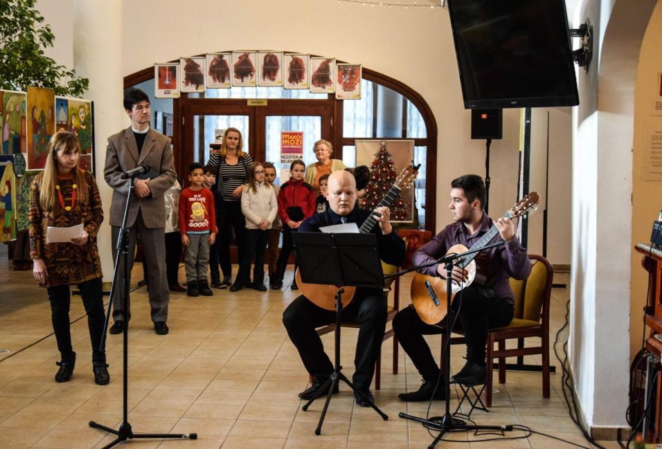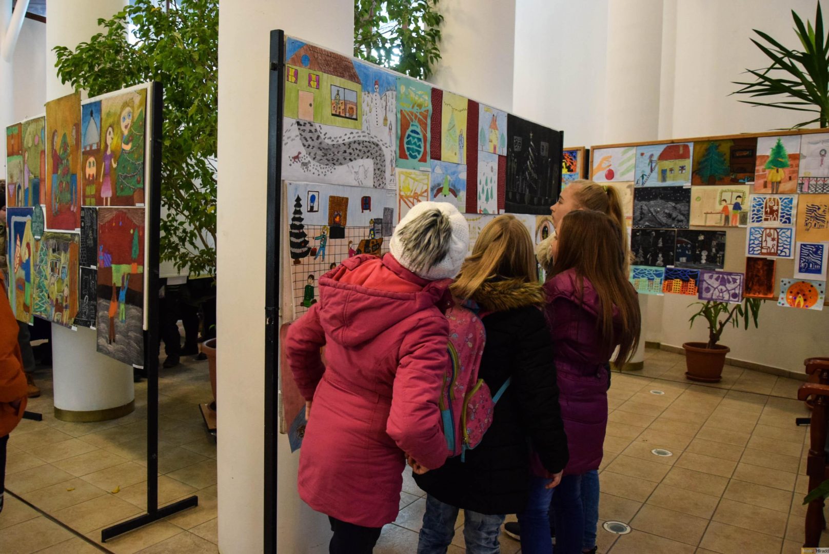 Oláh Nóra, művész tanár és szervező elmondta: – Egy hagyomány folytatása ez a kiállítás, mindig karácsony tájékán írunk ki egy pályázatot általános és középiskolás diákok számára, melynek témája ez az időszak. Mindenképpen sík jellegű munkákat tudtunk befogadni, de a technikát és a kép méretét nem szabtuk meg. A hagyományos technikákat használták a legtöbben, festettek, rajzoltak. Évről évre egyre több alkotás érkezik, az a koncepciónk, hogy minden pályaművet kiállítunk. –