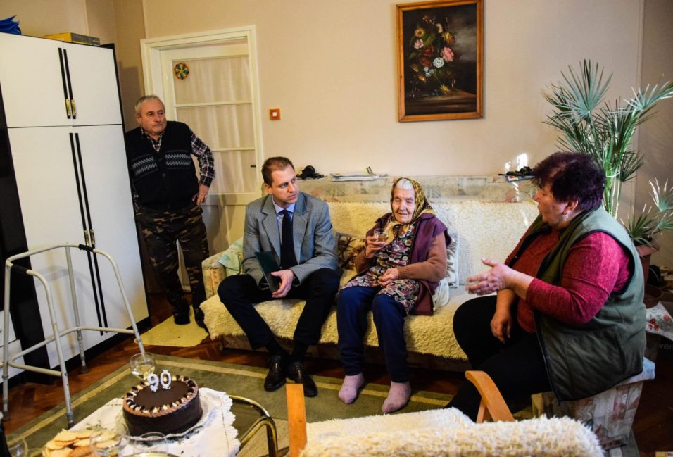 Czirbus Gábor alpolgármester köszöntötte otthonában Igaz Antalnét 90. születésnapja alkalmából. Virágcsokorral, tortával és még egy a miniszterelnök által aláírt emléklappal is kedveskedett az időskorú hölgynek.