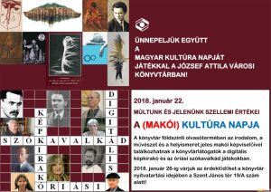 Közös ünneplésre invitál a József Attila Városi Könyvtár a magyar kultúra napjának alkalmából. Digitális képkirakó és óriási szókavalkád játék is várja az érdeklődőket.