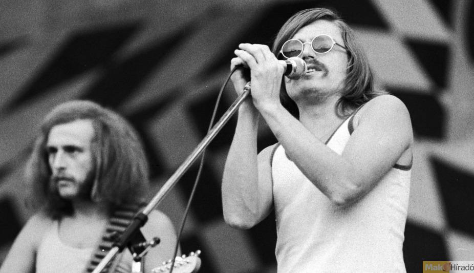 Szörényi Levente mikrofonba énekel a Fonográf együttes koncertjén a Kisstadionban. Fotó: MTI