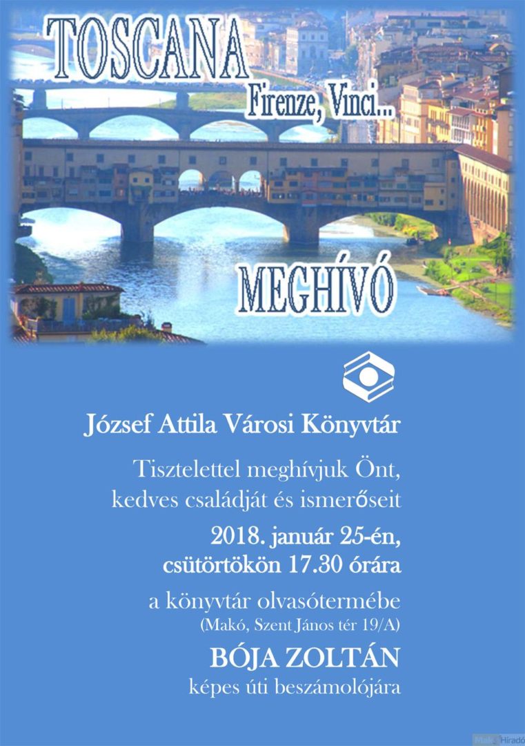 Bója Zoltán osztja meg Toszkánában szerzett élményeit a József Attila Városi Könyvtárban csütörtökön délután. A képen Firenze.
