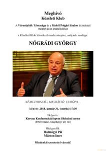 Január 31-én 17:30-ra várják az érdeklődőket a Koronába. A klub házigazdái: Halmágyi Pál és Márton Imre.
